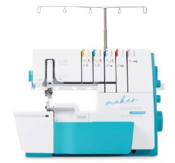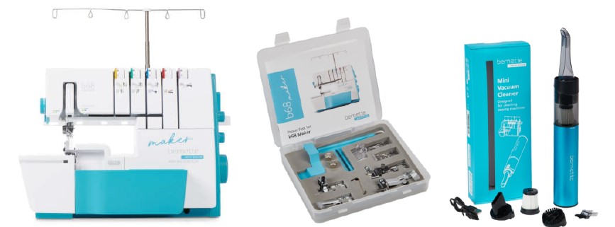 Die Overlock/Coverstich-Combo-Maschine mit automatischem Lufteinfädler. Bei der Maker Edition ist ein Spezialzubehörset und ein Ministaubsauger im Preis enthalten.
